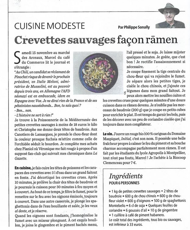Crevettes sauvages façon rāmen & vin du Domaine Maspiquet