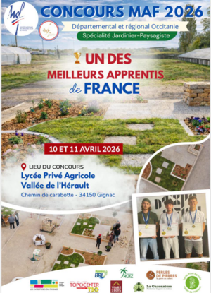 Trois apprentis en Bac Professionnel Aménagements Paysagers du CFA Agricole de l’Hérault (site de Montpellier) se sont engagés dans le prestigieux concours « Un des Meilleurs Apprentis de France » – spécialité Jardinier Paysagiste (sous la présidence de Maxime Bougain, Société nationale des Meilleurs Ouvriers de France) 🌟..
