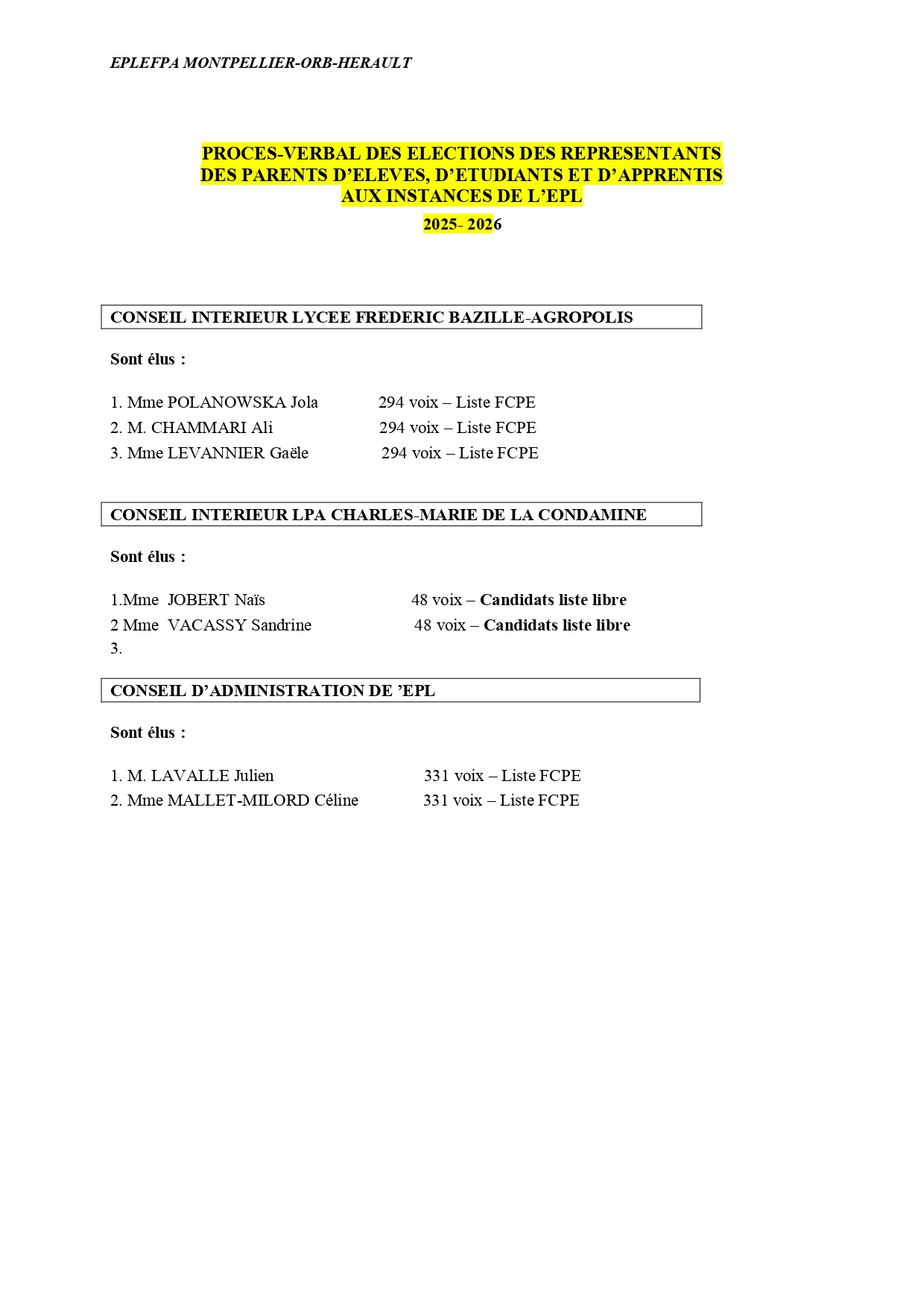 Le CAMPUS AGROPOLIS, EPLEFPA Montpellier-Orb-Hérault est piloté par un Conseil d’Administration de 30 membres élus ou nommés composant plusieurs collèges, sous la Présidence de M. THOMAS, élu par les membres du Conseil d'Administration.
