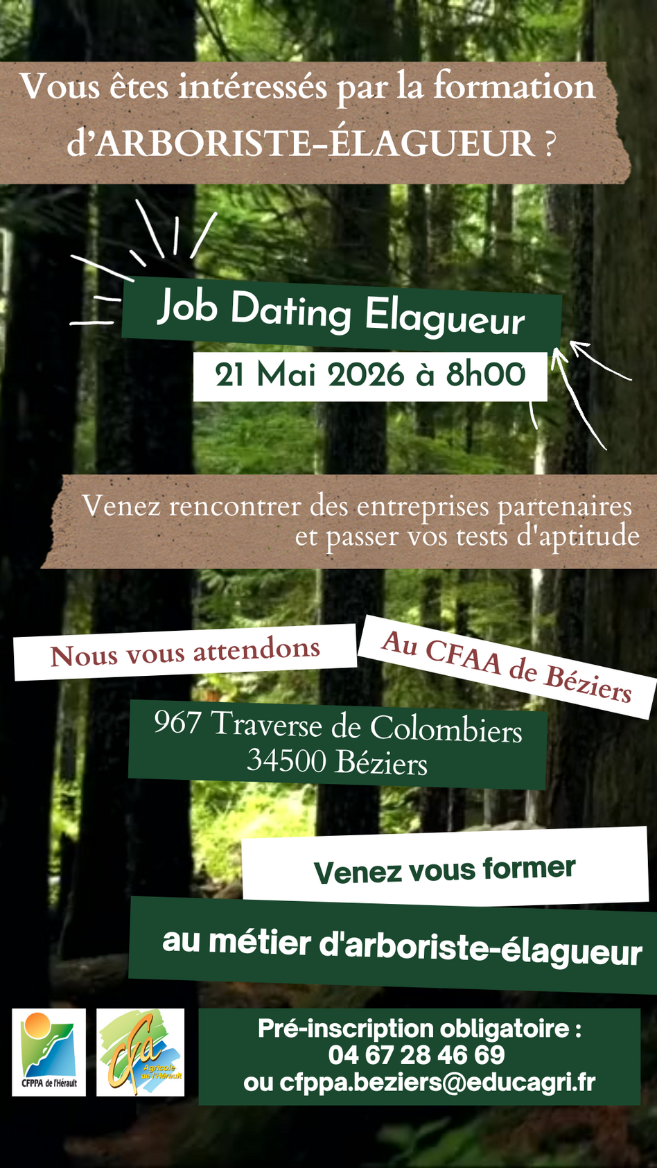 N'hésitez pas à nous contacter par e-mail : cfppa.beziers(at)educagri.fr ou par téléphone au 04.67.28.46.69