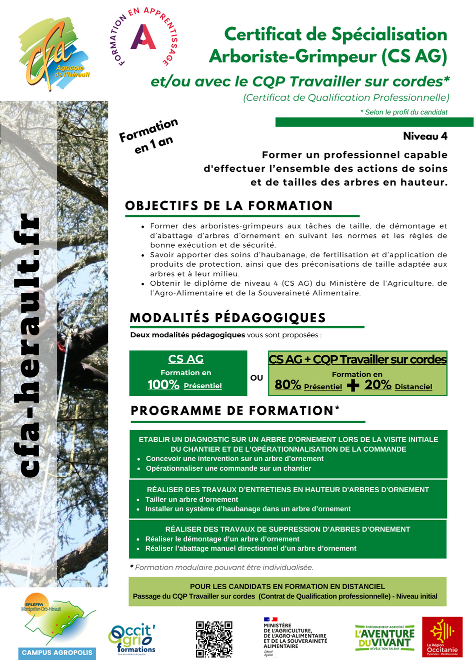 - CS AG + CQP Travailler sur cordes : Formation en 80% Présentiel + 20 % Distanciel