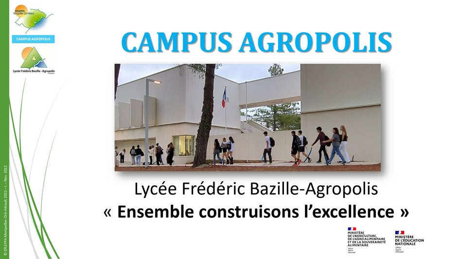 - Demander l'orienttion du Bac Technologique STAV (Sciences et Technologies de l'Agronomie et du Vivant) et le L.E.G.T.A. Frédéric Bazille - Agropolis.