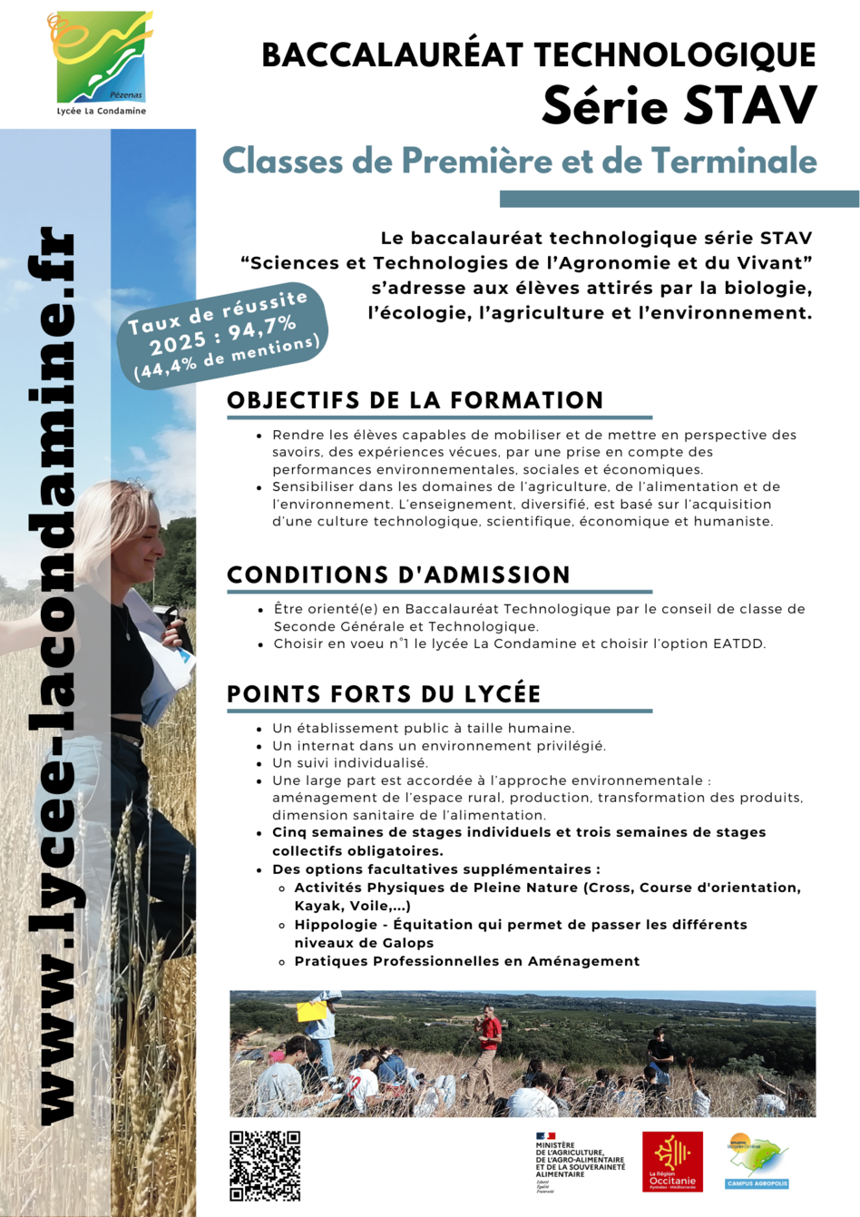Baccalauréat Technologique STAV (Sciences et Technologies de l’Agronomie et du Vivant)