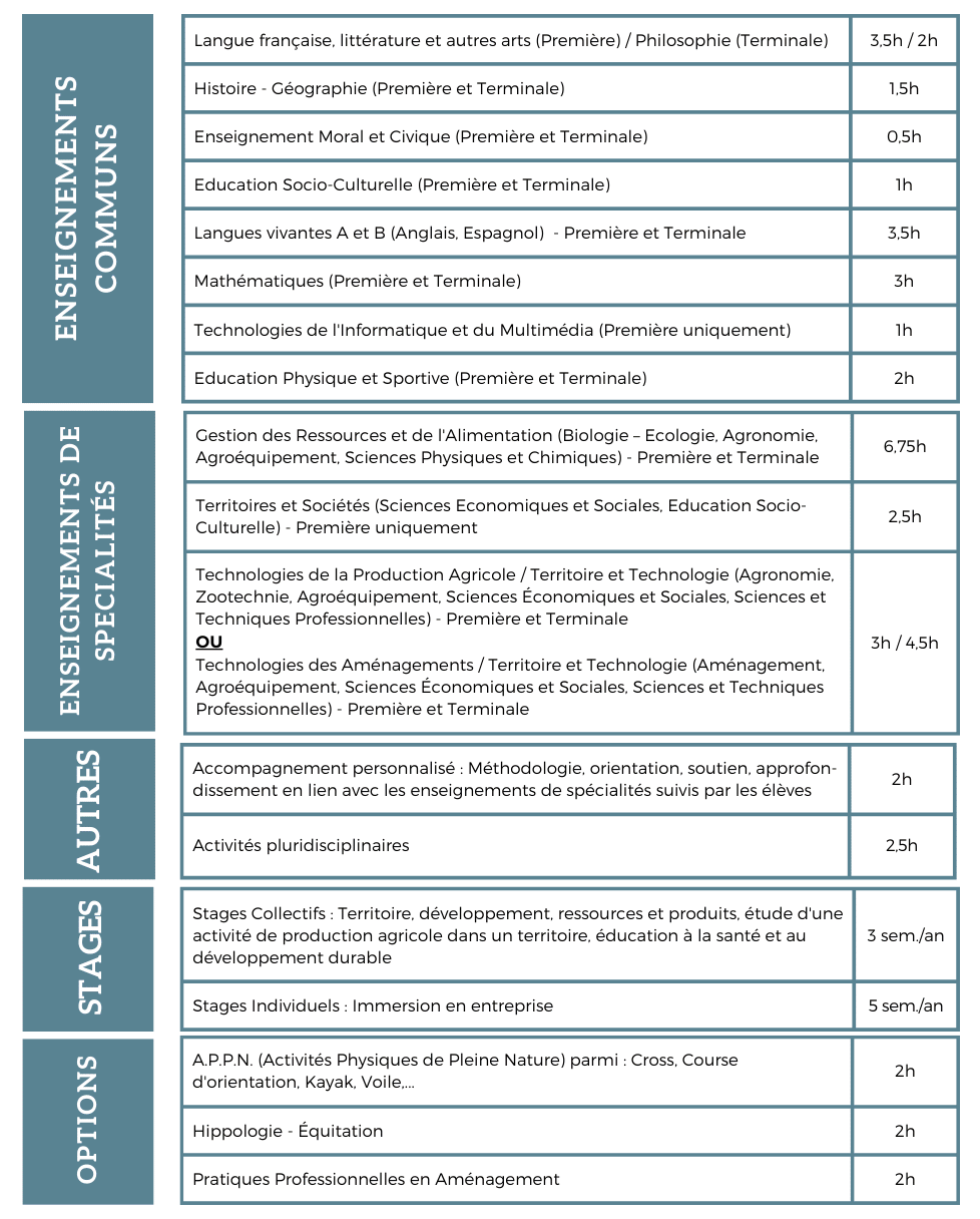 - Sensibiliser dans les domaines de l’agriculture, de l’alimentation et de l’environnement. L’enseignement, diversifié, est basé sur l’acquisition d’une culture technologique, scientifique, économique et humaniste.